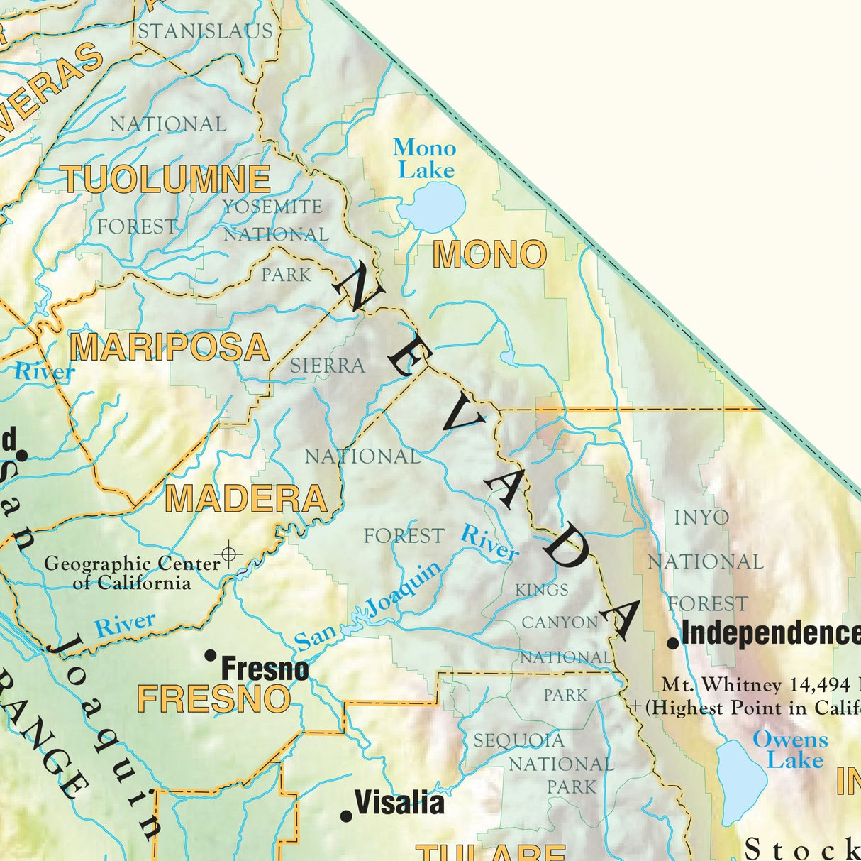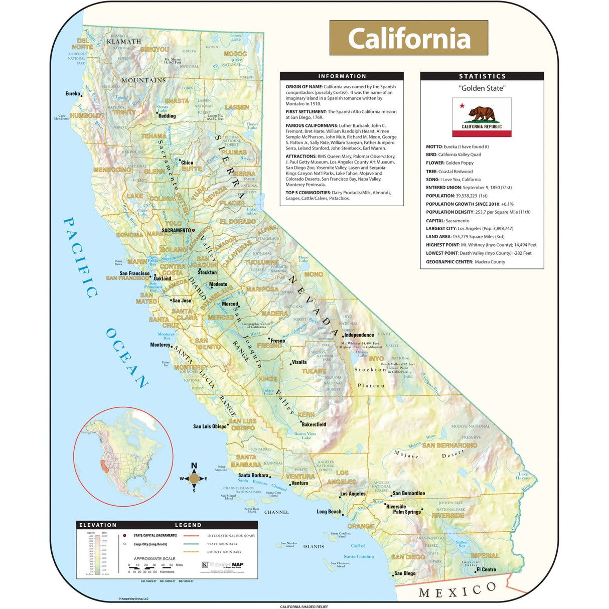 The California Shaded Relief Wall Map by Kappa Map Group comes in three sizes. It includes: