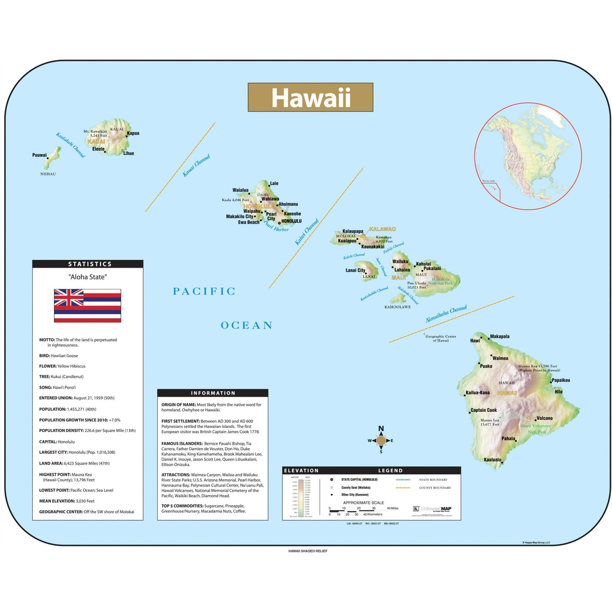 The Hawaii Shaded Relief Wall Map by Kappa Map Group comes in three sizes. It includes: