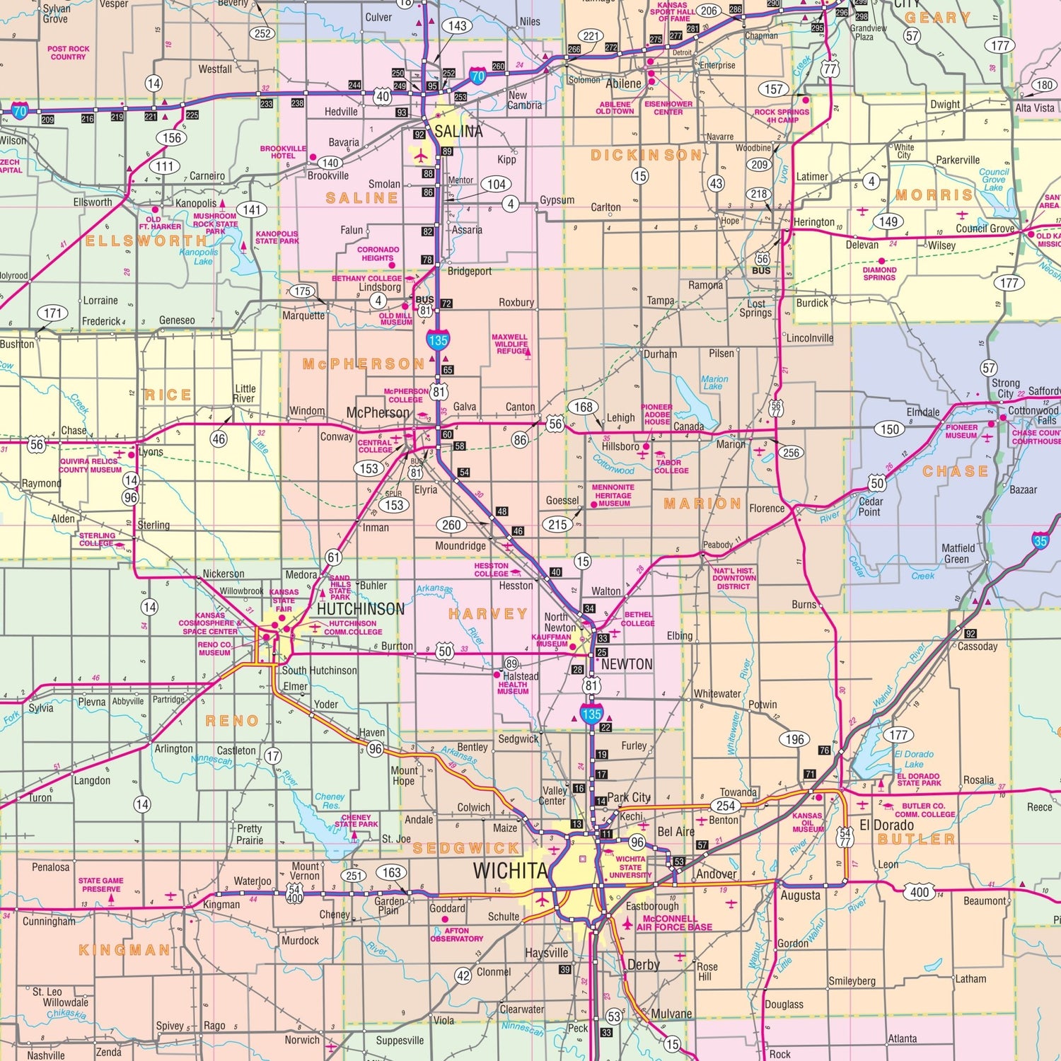 Kansas State Wall Map