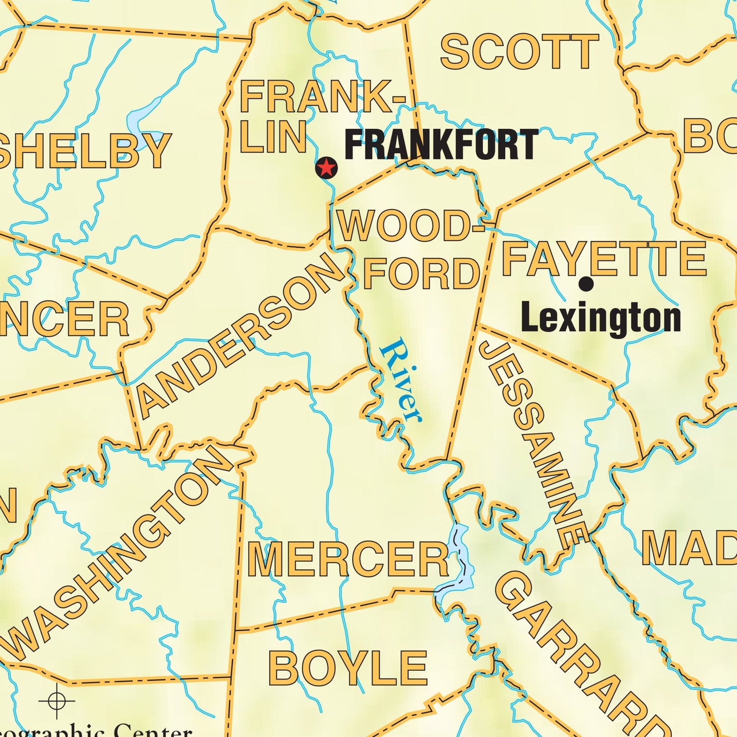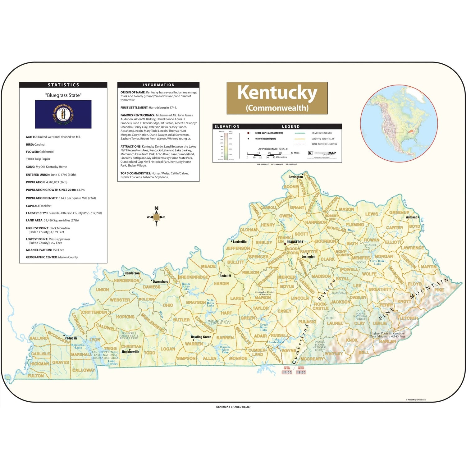 The Kentucky Shaded Relief Wall Map by Kappa Map Group comes in three sizes. It includes: