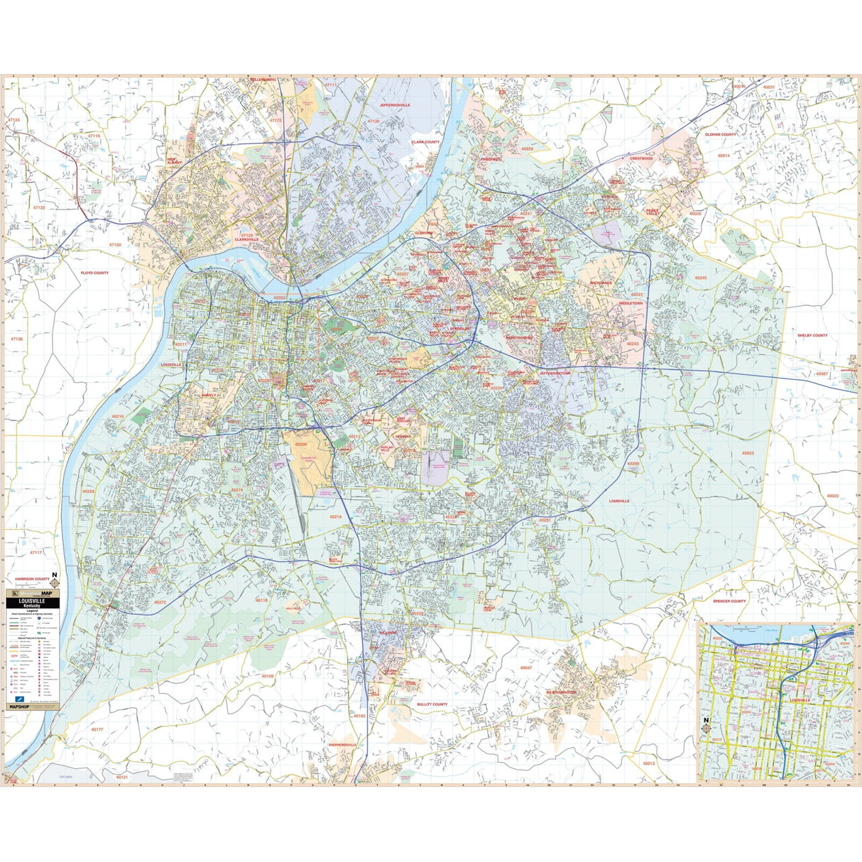 Explore the Louisville/Jefferson County, KY Wall Map, an invaluable resource offering a comprehensive view of the region's streets and details. This map, covering Jefferson County and its surroundings, delivers vital geographic insights.