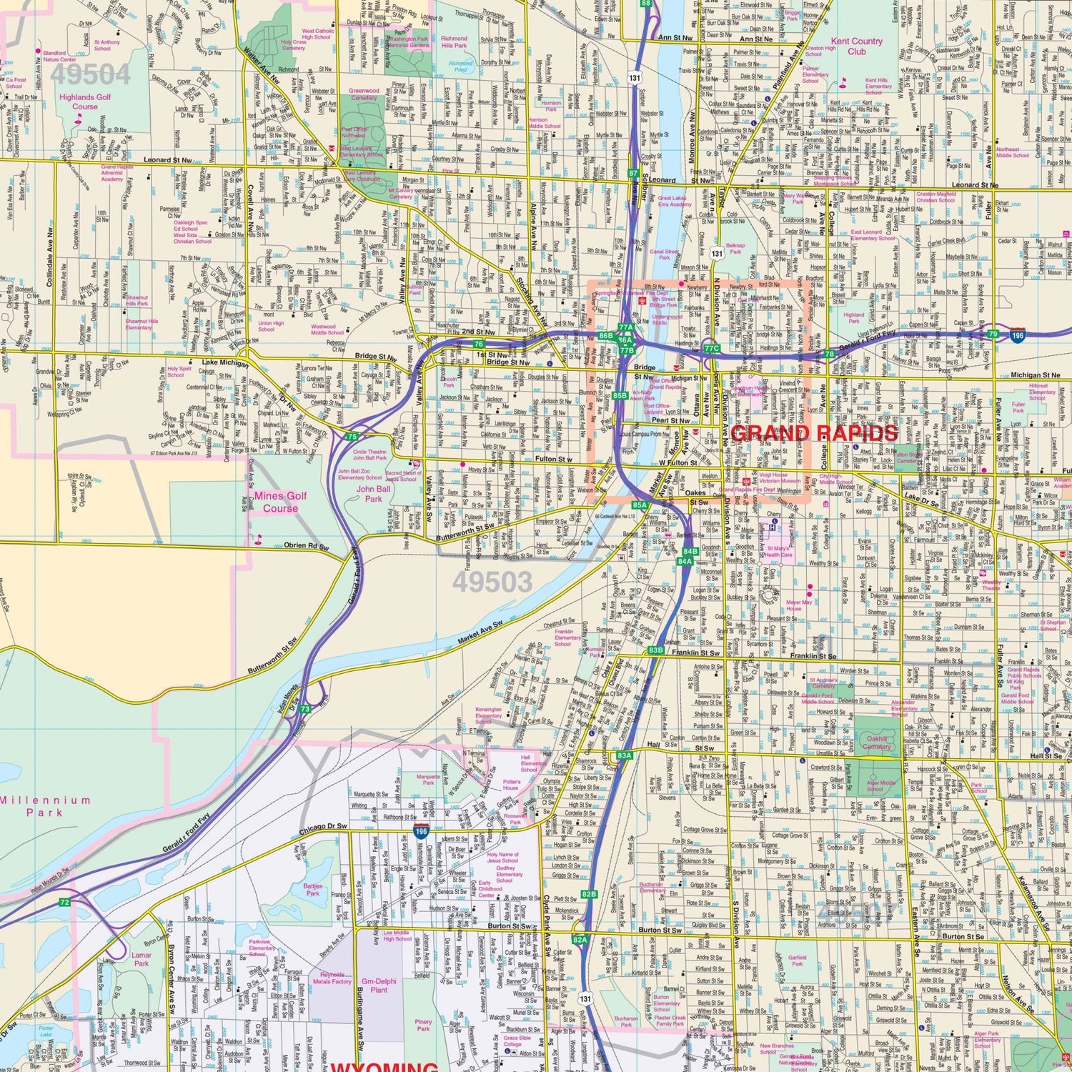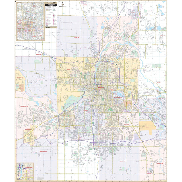 Discover the Grand Rapids, MI Wall Map, a valuable tool for your navigation and reference needs, covering the city of Grand Rapids and its surroundings.