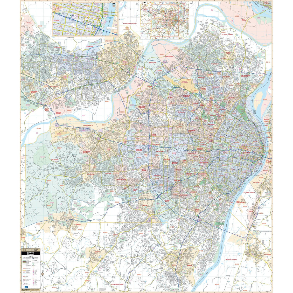The St. Louis, Missouri Wall Map by Kappa Map Group offers complete street detail at a specific scale. The area of coverage for this map includes: