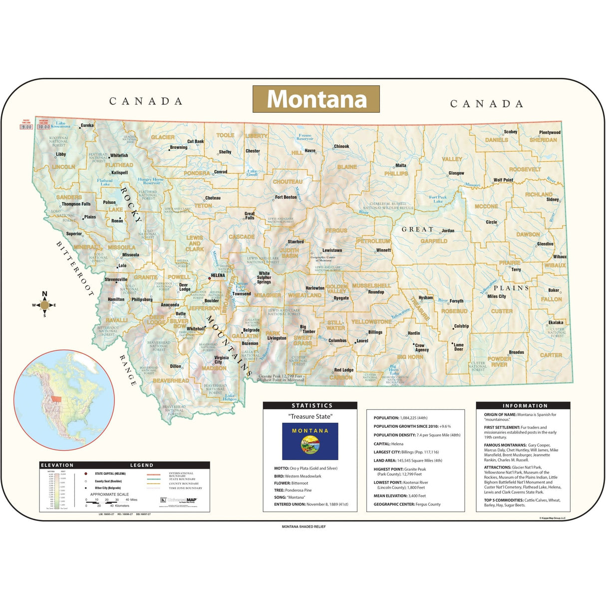 The Montana Shaded Relief Wall Map by Kappa Map Group comes in three sizes. It includes: