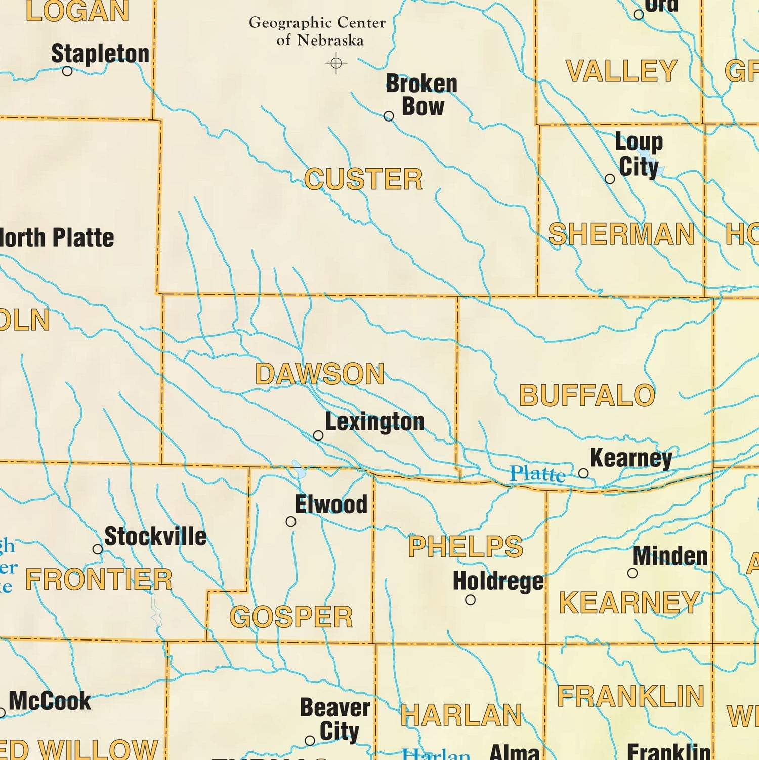 The Nebraska Shaded Relief Wall Map by Kappa Map Group comes in three sizes. It includes: