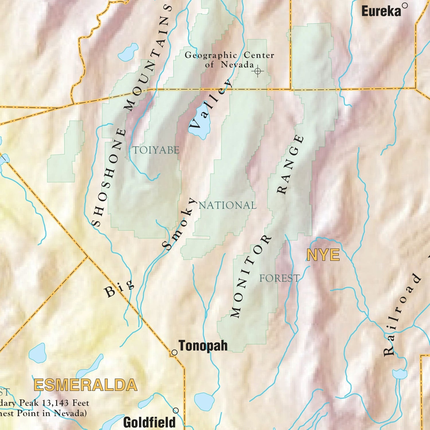 The Nevada Shaded Relief Wall Map by Kappa Map Group comes in three sizes. It includes: