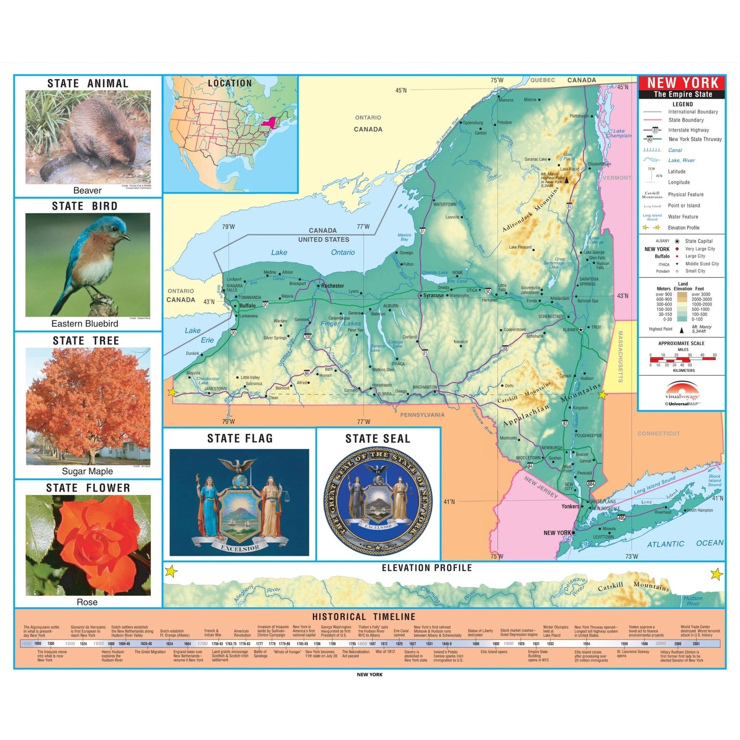 The New York State Primary Thematic Wall Map is the perfect teaching aid for state studies and related subjects. Political/physical maps with hypsometric colorations; shows county boundaries, interstate highways, county seats, cities and towns, and state regions. Maps correlate with state standards and curriculum guidelines.