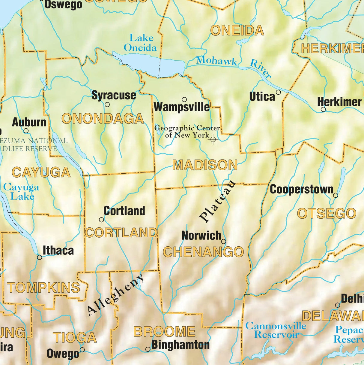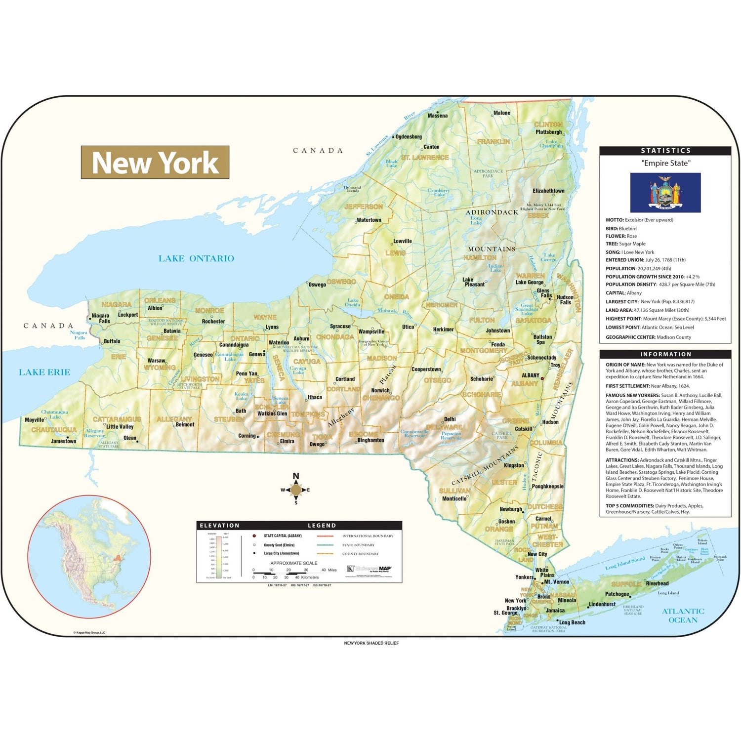 The New York Shaded Relief Wall Map by Kappa Map Group comes in three sizes. It includes: