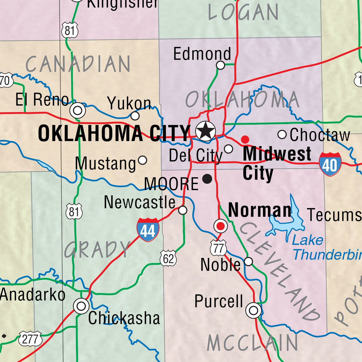 The Oklahoma State Primary Thematic Wall Map is the perfect teaching aid for state studies and related subjects. Political/physical maps with hypsometric colorations; shows county boundaries, interstate highways, county seats, cities and towns, and state regions. Maps correlate with state standards and curriculum guidelines.