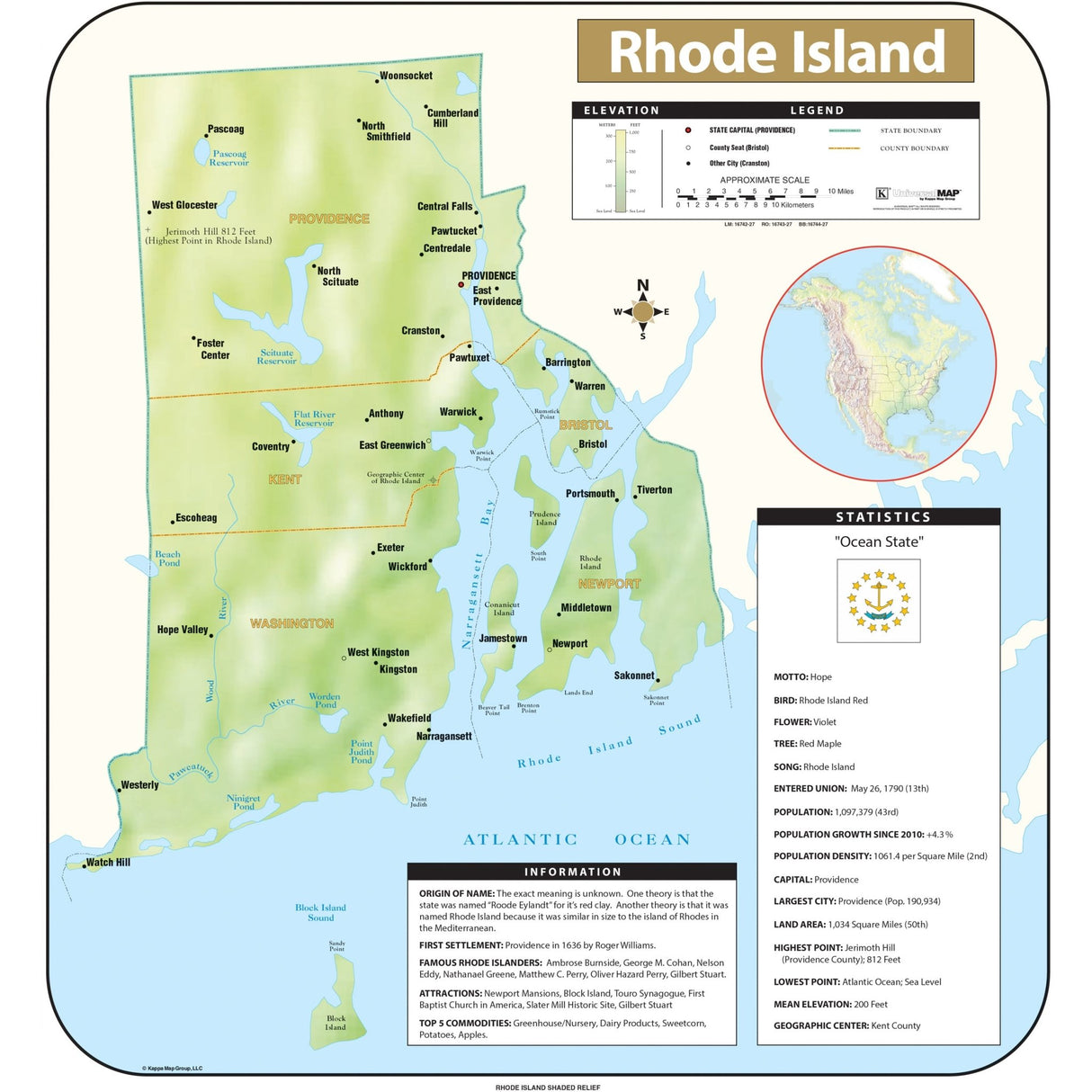 The Rhode Shaded Relief Wall Map by Kappa Map Group comes in three sizes. It includes: