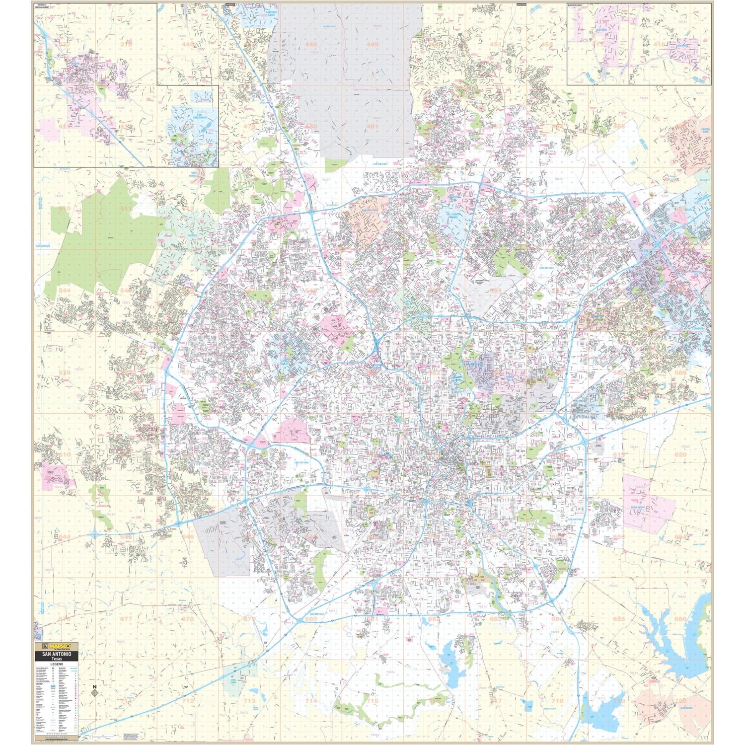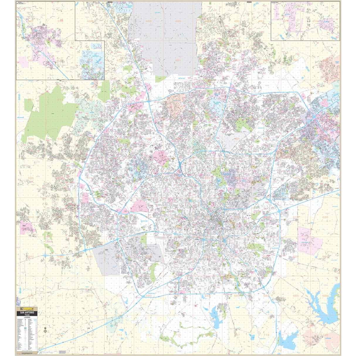 The San Antonio, Texas Wall Map provides complete street detail without specific measurements. The area of coverage for this map includes: