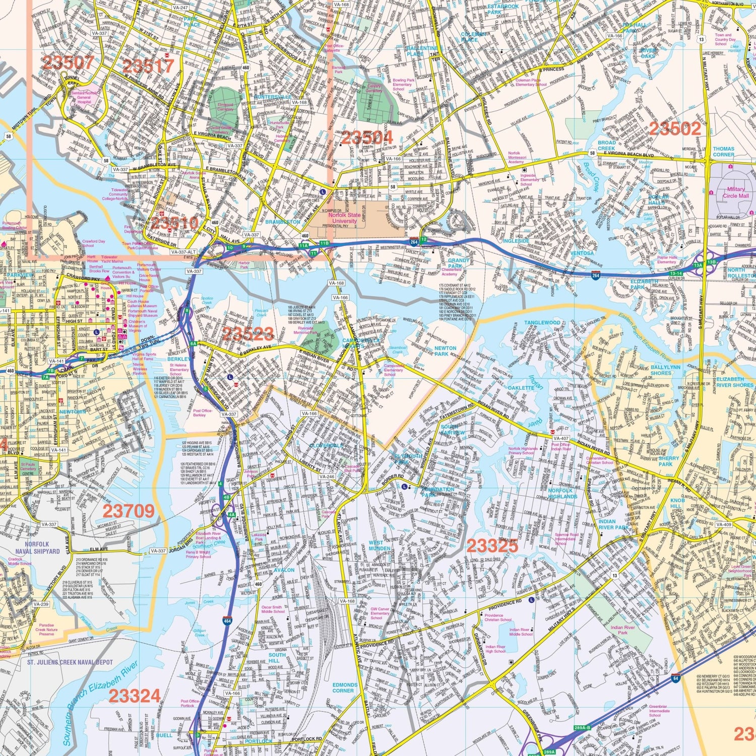 Tidewater, VA Wall Map - 76" x 54" / Paper is backordered and will ship as soon as it is back in stock.