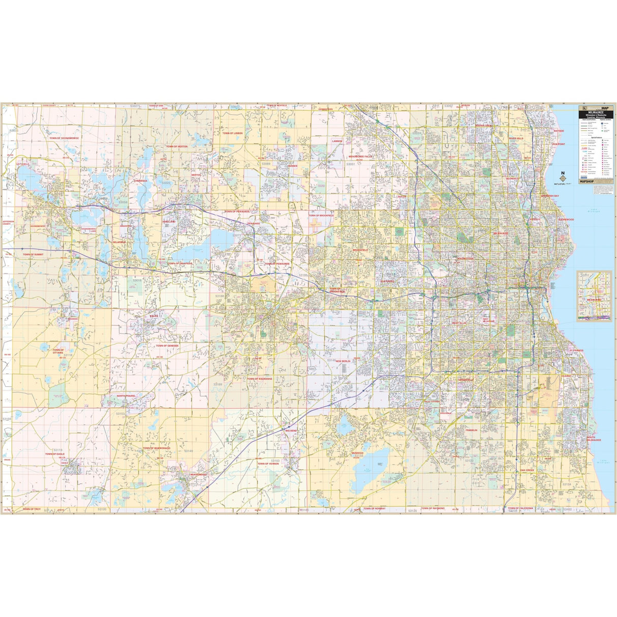 Milwaukee & Waukesha Counties, WI Wall Map - 80" x 54" / Paper is backordered and will ship as soon as it is back in stock.